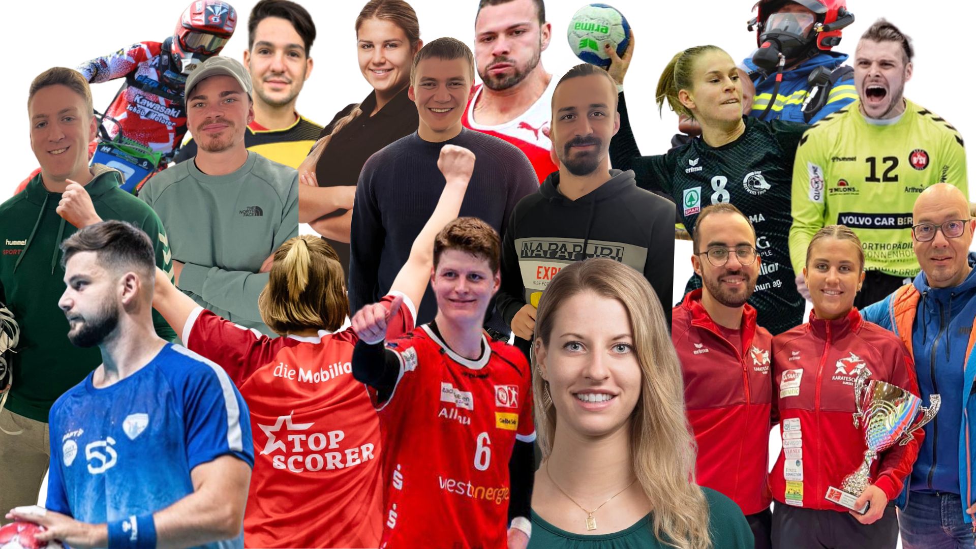 Bild: Sportler/innen - Spitzenathleten/innen, Halb-Profis - die alle parallel arbeiten oder studieren und Nino Paneduro über die vergangenen Monate bzw. Jahre persönlich auf dem Weg zu ihren Zielen betreut hat.